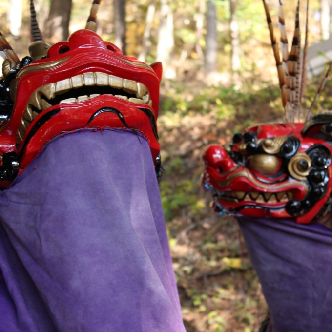 江戸時代から続く神明社奉納として、男女の獅子が舞います。