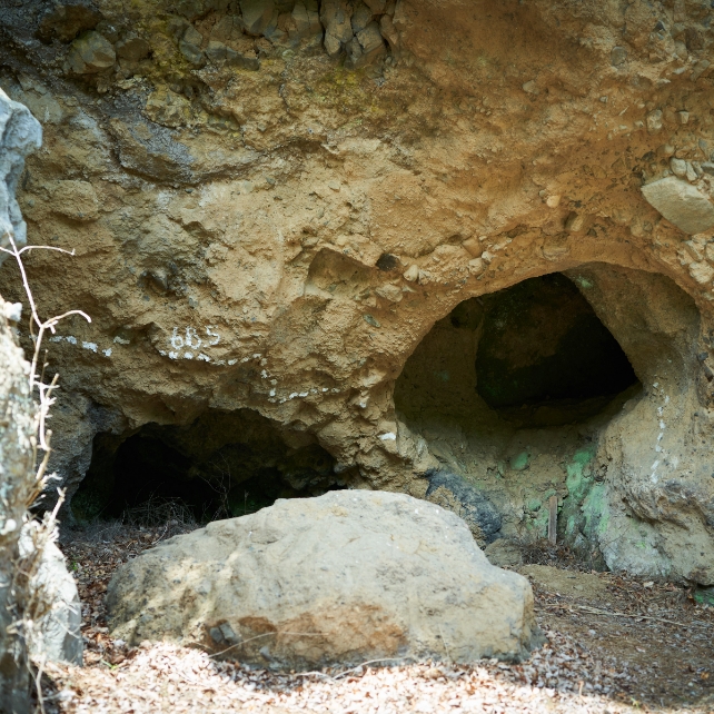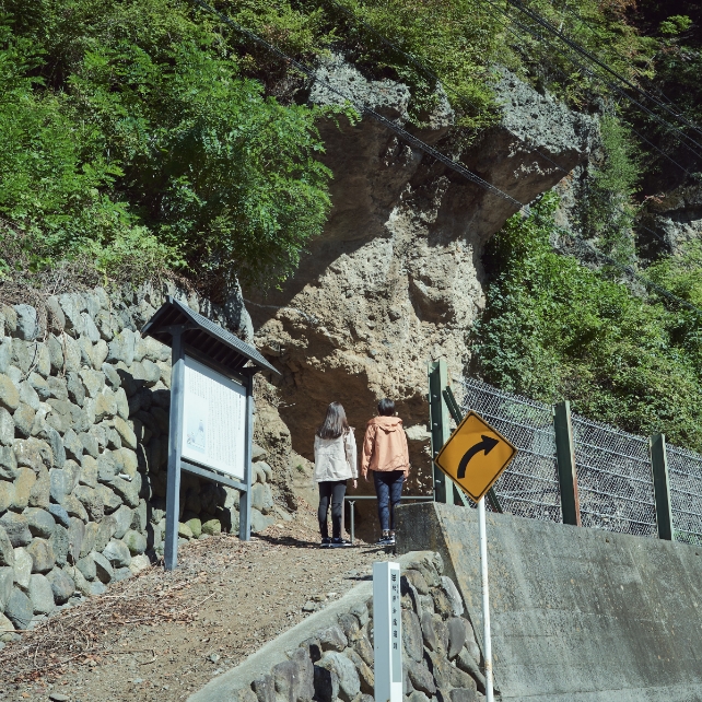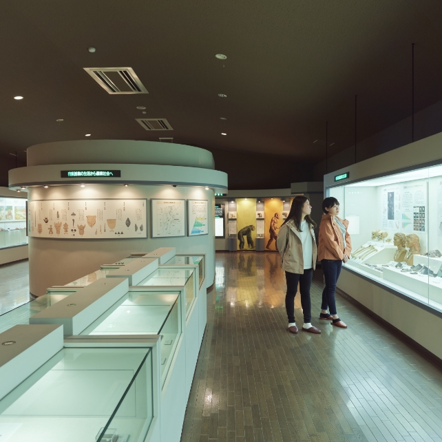 1965年に発見され後に国史跡に指定された栃原岩陰遺跡。出土品は考古博物館に展示されています。