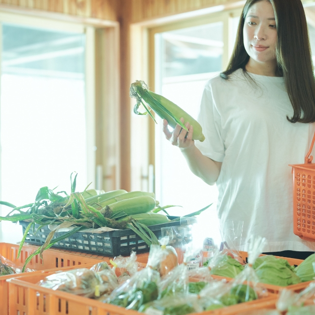直売所では新鮮な野菜を
