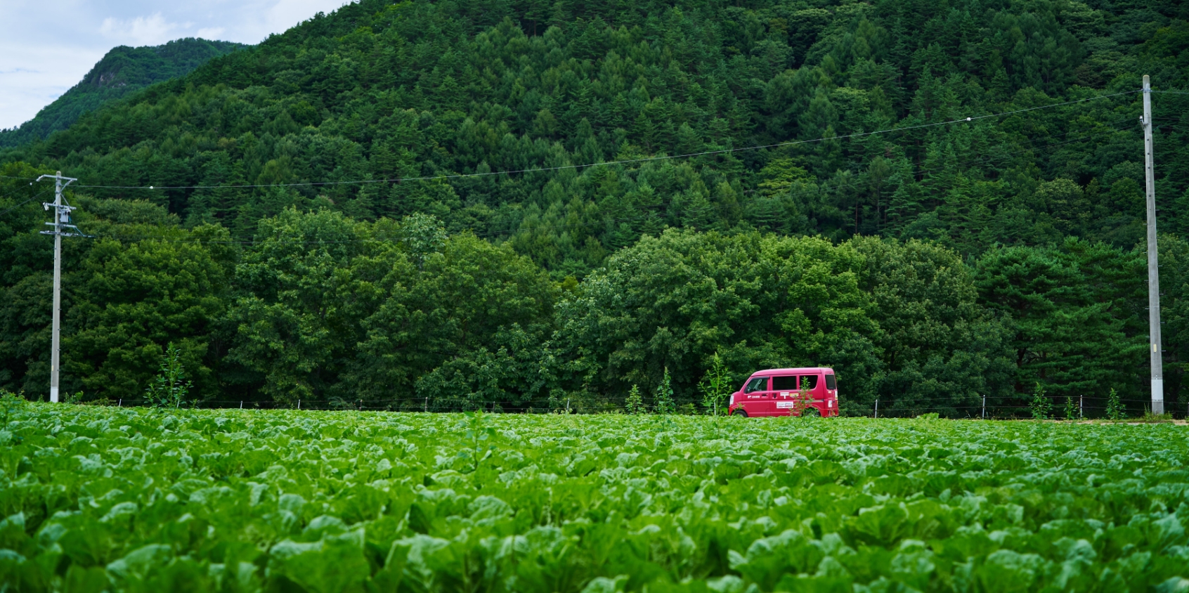 郵便車は野菜畑の中も疾走します
