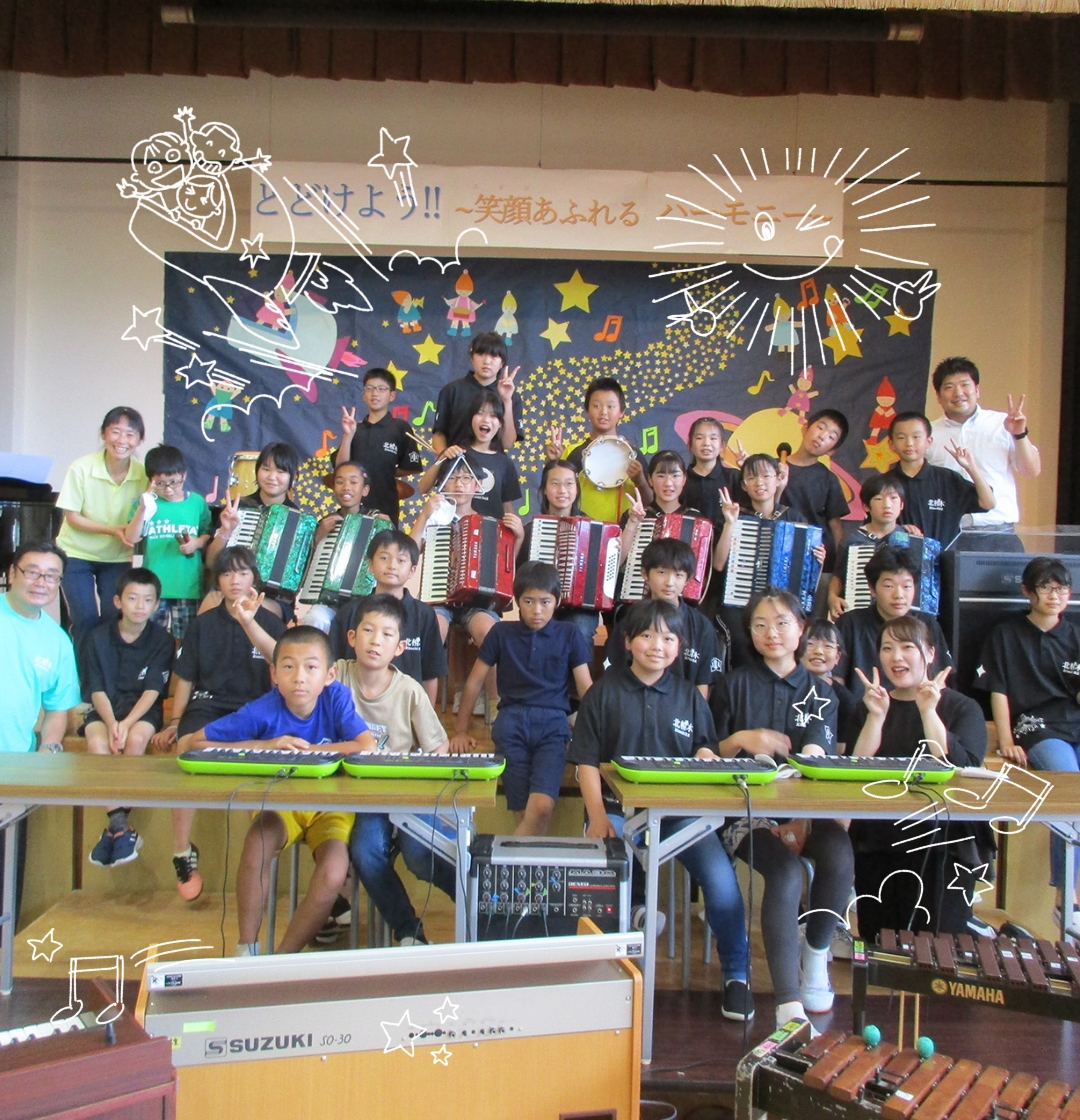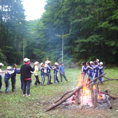 行事では1・2年生の三滝遠足、4・5年生の長者の森キャンプ、5・6年生の御座山登山など恒例となっており、さらに平成元年からは村の事業として6年生が長崎県五島列島を訪れる体験学習も実施しています。