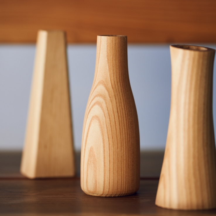 木は磨くだけでちょっとした一品になれる可能性溢れるものです。木の魅力を多くの方に知ってほしいです。今は生花店とのコラボだけですが、ホテルやレストランの一輪挿しなどに使っても目をひくと思います。さまざまな場にサラッと添えるものになれるといいですね。
