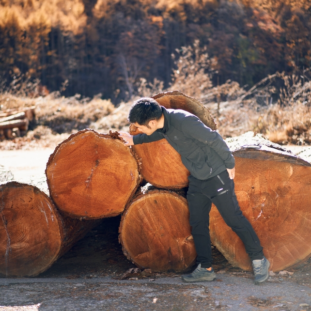 数十年ごとの皆伐が行なわれているタイミングであり、日本一のカラマツ材木が豊富にあります。様々なところと連携し、家に使われる材木の一部に活用してもらえるといいなと思います。海外からのウッドショックや輸入コスト高などで、国産材木の価値や活用法が見直されています。材質のよさを活かし多くの北相木のカラマツが使われるようになれば嬉しいです。